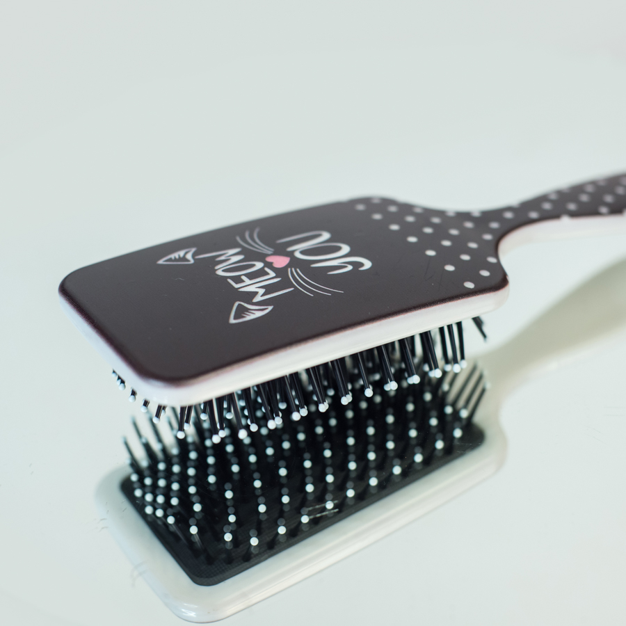 Large sized Black and white meow detangling hair brush