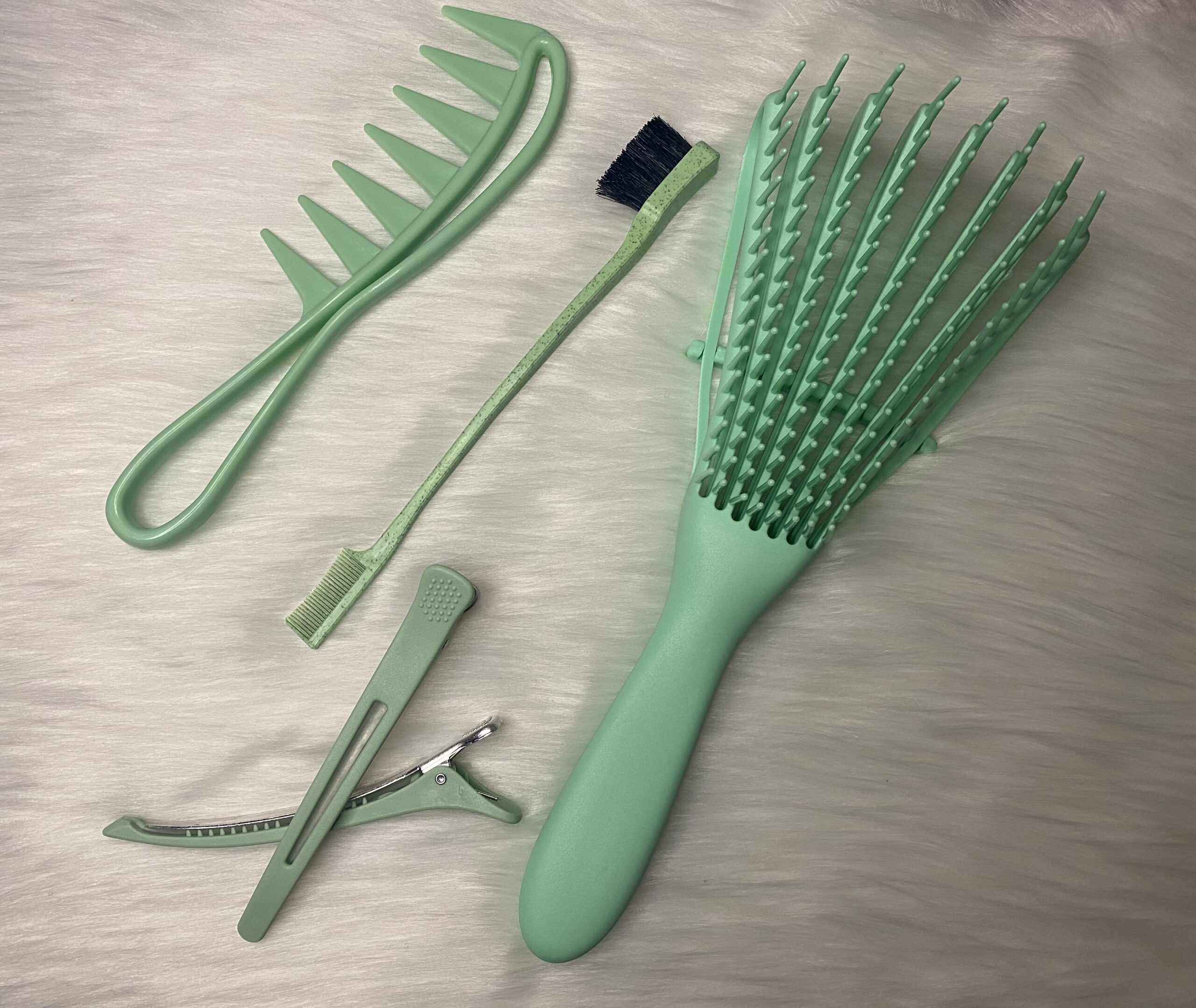 5 piece hair brush, comb and hair clip set